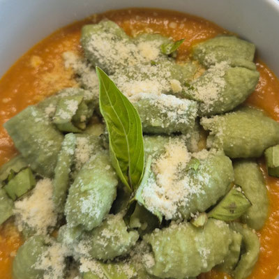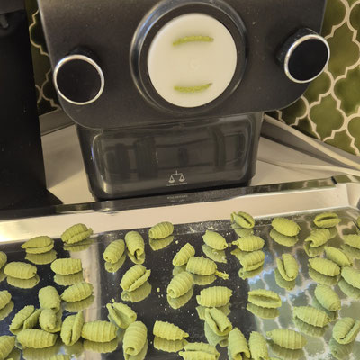 Ich verwende für die Herstellung von Pasta eine Pastamaschine. Pasta lässt sich damit im Handumdrehen in ganz unterschiedlichen Formen herstellen und auch Gniocchi kann mit der Maschine hergestellt werden.